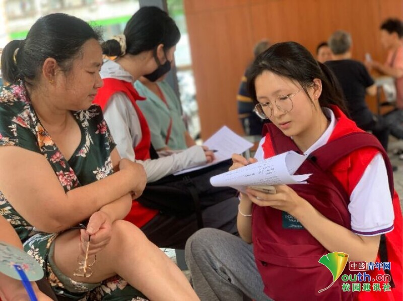 图为志愿者去到凉亭进行问卷调研。中国青年网通讯员 王秋跃 摄