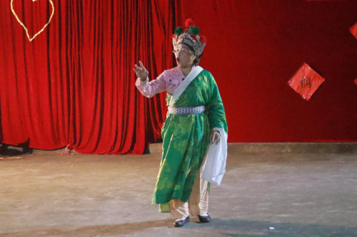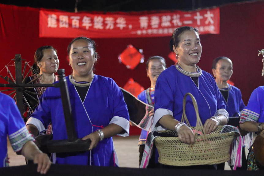 联欢会上,实践团、岭南村文艺队、牵手公益组织、侗戏传承人、村民共聚一堂,一起度过这难忘的夏夜。实践团队员们或放声歌唱《把一切献给党》,或与小朋友一起边弹边唱,或将舞蹈技巧发挥得淋漓尽致,或齐唱建团百年主题曲《有我》......村民们将侗纱、侗琵琶、侗乡农耕文化等侗族文化节目搬上舞台,牵手公益组织在现场弹奏侗琵琶,并以《欢迎你到侗寨来》一曲感谢团队的到来。期间,侗戏非遗传承人——龙登娥老师也第一时间赶赴现场,以一首侗戏深入侗乡民众内心。现场,传统文化与现代文化之间交相辉映,让村民们感受到一场侗乡特别的“村晚”。