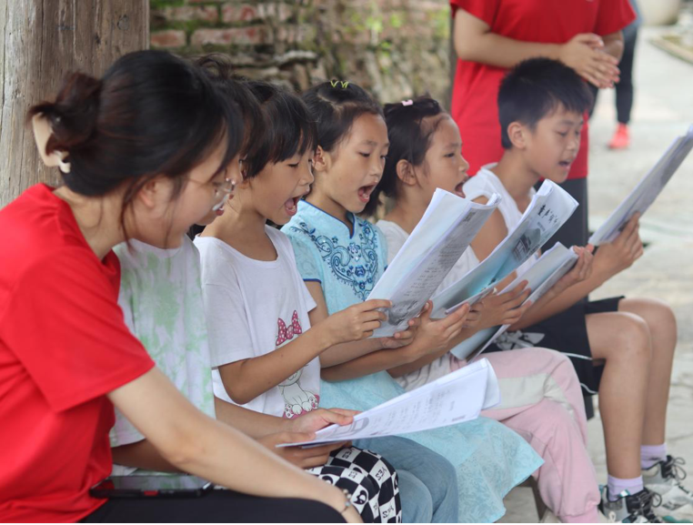 7月3日-7月10日,实践团携原创侗族童谣教材《童声侗听》及配套原创教案在坪坦乡岭南村“儿童之家”、双江镇芋头村江桥红香希望小学开展“童声‘侗’听”侗族民族音乐公益课堂,通过游戏互动、故事引导,带领小朋友们了解音乐基础知识、熟悉教材歌谱、认识乐器、熟唱侗歌,同时引导小朋友通过识别教材中的二维码,线上收看“指尖上的音乐‘云’课堂”。较以往走动式支教不同,团队通过驻扎当地,更加深入当地乡民们及孩童们的生活日常,拉近了距离、贴近了心。“岭南村作为与ky官方网站音乐学院实践教育的共建基地,‘儿童之家’非常开心能有大学生过来上课,师生们的耐心教导与真诚相待让每一个小朋友受益匪浅。”岭南村“儿童之家”负责人、村干部吴春榕说道。