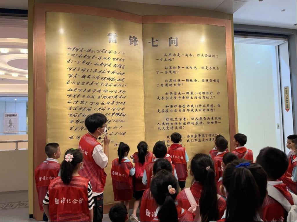 志愿者正在向参观的小朋友们讲解《雷锋七问》
