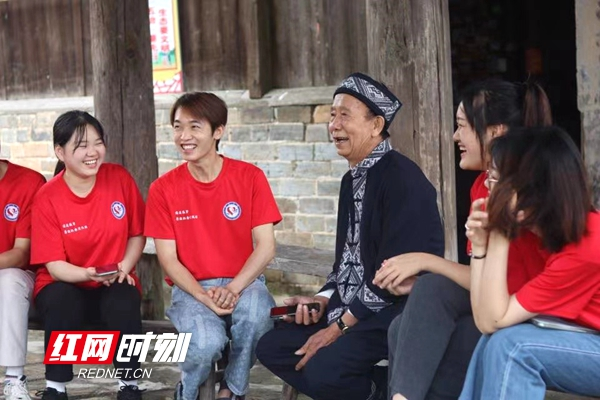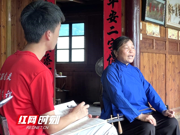 实践期间,实践团寻访岭南村侗族文化非遗传承人吴祥跃、龙登娥,见证朴素的文化情怀。乡野之间,实践团队员们围坐一圈,聆听着湖南省第二批非物质文化遗产侗款非遗传承人吴祥跃老人的侗乡故事。