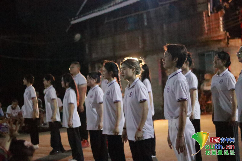 图为团队成员在当地“村晚”舞台汇演。中国青年网通讯员李璇摄