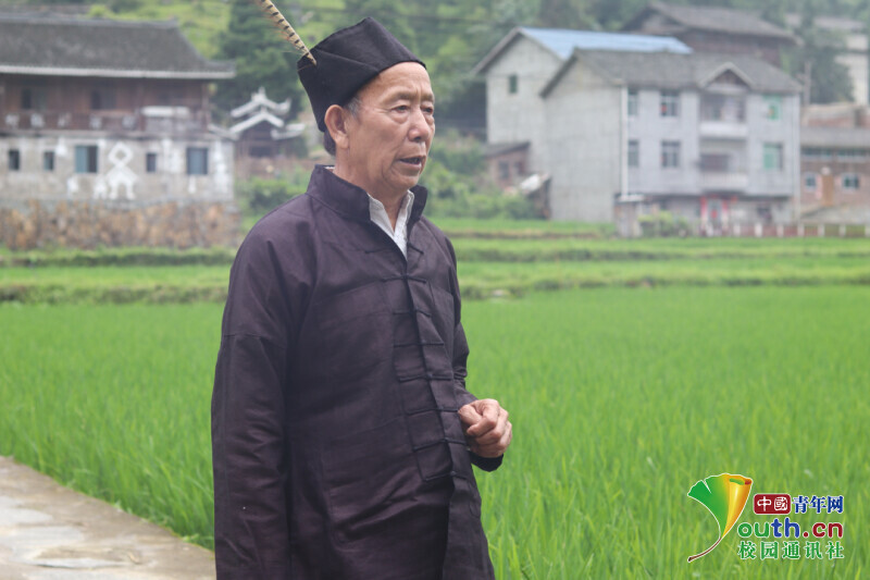 吴祥跃爷爷在岭南村的田野间唱侗款。中国青年网 李馨瑶 供图