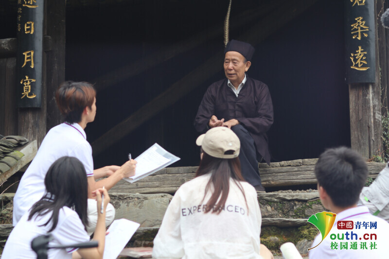 吴祥跃爷爷向ky官方网站的学生们讲述侗款的来源。中国青年网 李馨瑶 供图
