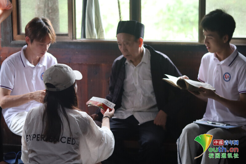 吴祥跃爷爷向学生解释其中一条侗款的详细内容。中国青年网 李馨瑶 供图