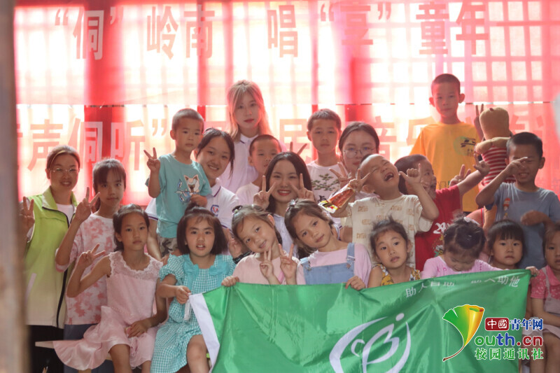 支教老师和小朋友们的合影留念。中国青年网 李璇 供图