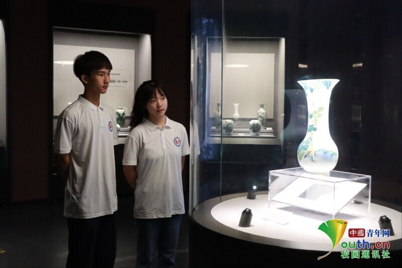 图为实践队员欣赏醴陵陶瓷博物馆的镇馆之宝——扁豆双禽瓶(获1915年巴拿马万国博览会金奖)中国青年网通讯员 何嘉玲 供图