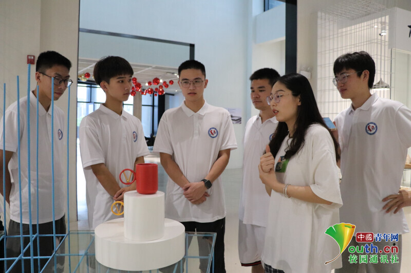 图为陶润会生活艺术中心工作人员为实践成员讲解陶瓷创新产品的创作灵感。中国青年网通讯员 周影锋 供图