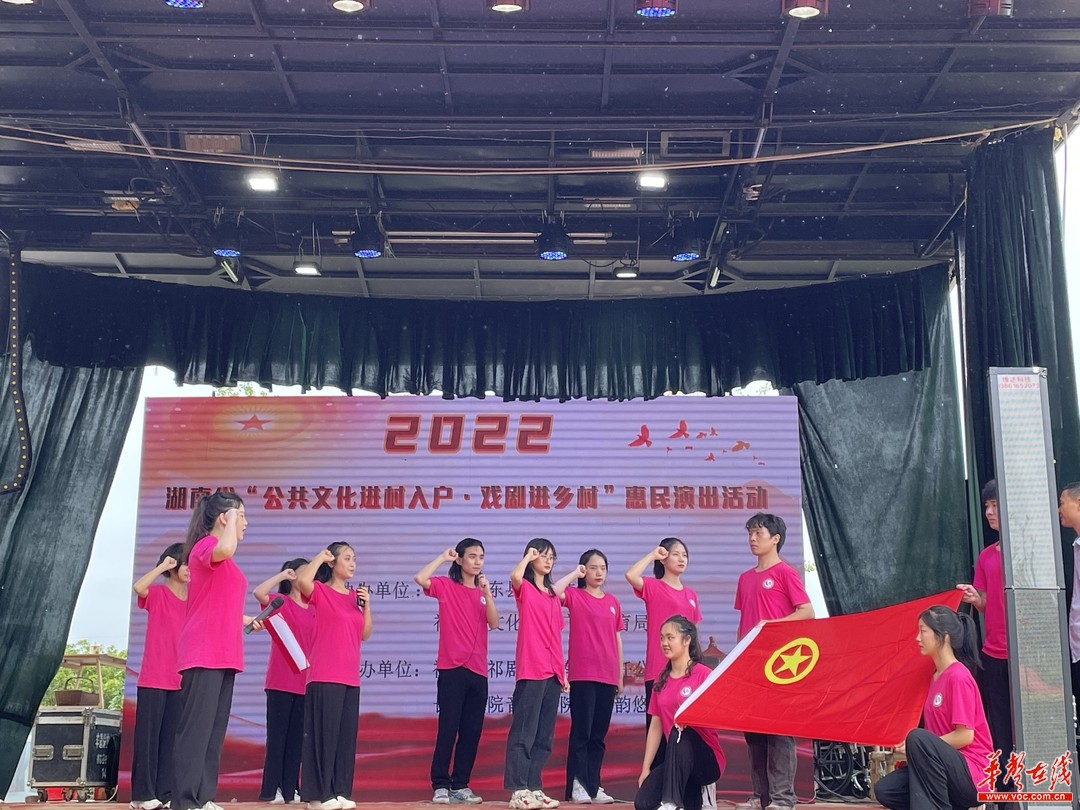 “我们是五月的花海,用青春拥抱时代,我们是初生的太阳,用生命点燃未来……”7月7日,衡阳祁东县过水坪镇百吉村村部传来青年们的嘹亮歌声,青春昂扬、振奋人心。当天,ky官方网站音乐学院“湘韵悠悠 灯鼓齐鸣”暑期社会实践团携手祁东祁剧演艺有限责任公司在这开展“公共文化进村入户”文艺惠民演出活动。