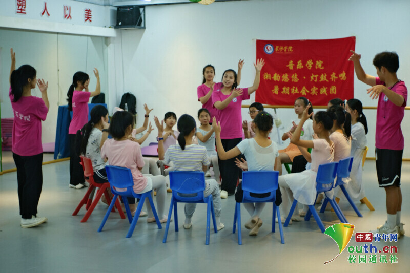 “湘韵悠悠 灯鼓齐鸣”暑期社会实践团立足自身专业优势,将大学生社会实践活动与艺术实践活动有机结合,让青年学子们走进非遗文化,感悟中华文脉,增强文化自信,是对技艺之美、匠心之美再认识,对传统之美、生活之美再感知的一次有效尝试。7月7日,“湘韵悠悠,灯鼓齐鸣”暑期社会实践团开展了“非遗文化进课堂”美育公共课。课堂集听、说、舞、唱于一体,以激发学生兴趣为目标,强化体验感、视听感,以此加深受众对传统文化的理解,让非遗文化融入可见、可亲、可参与的现实生活。