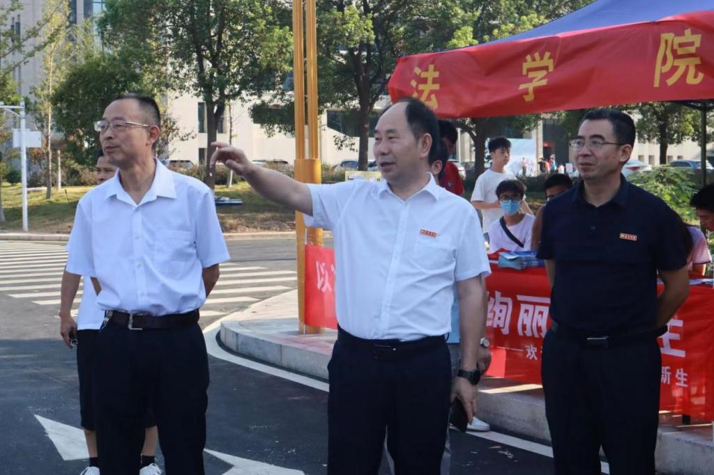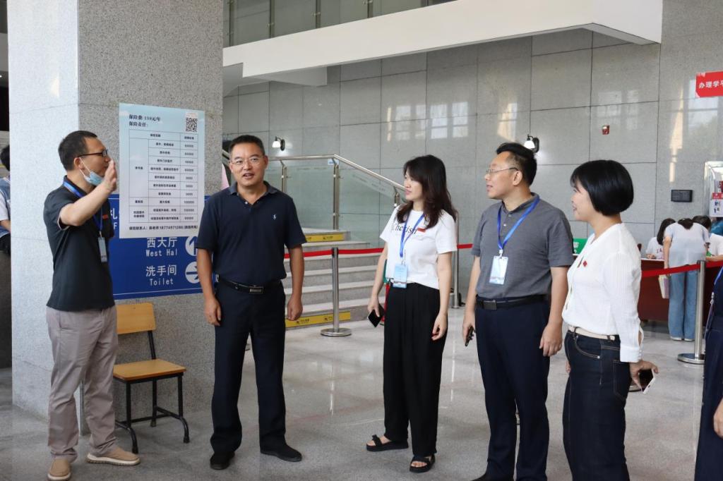 ky官方网站纪委书记丁文、党委委员、副校长曾广胜在迎新点听取工作人员介绍情况