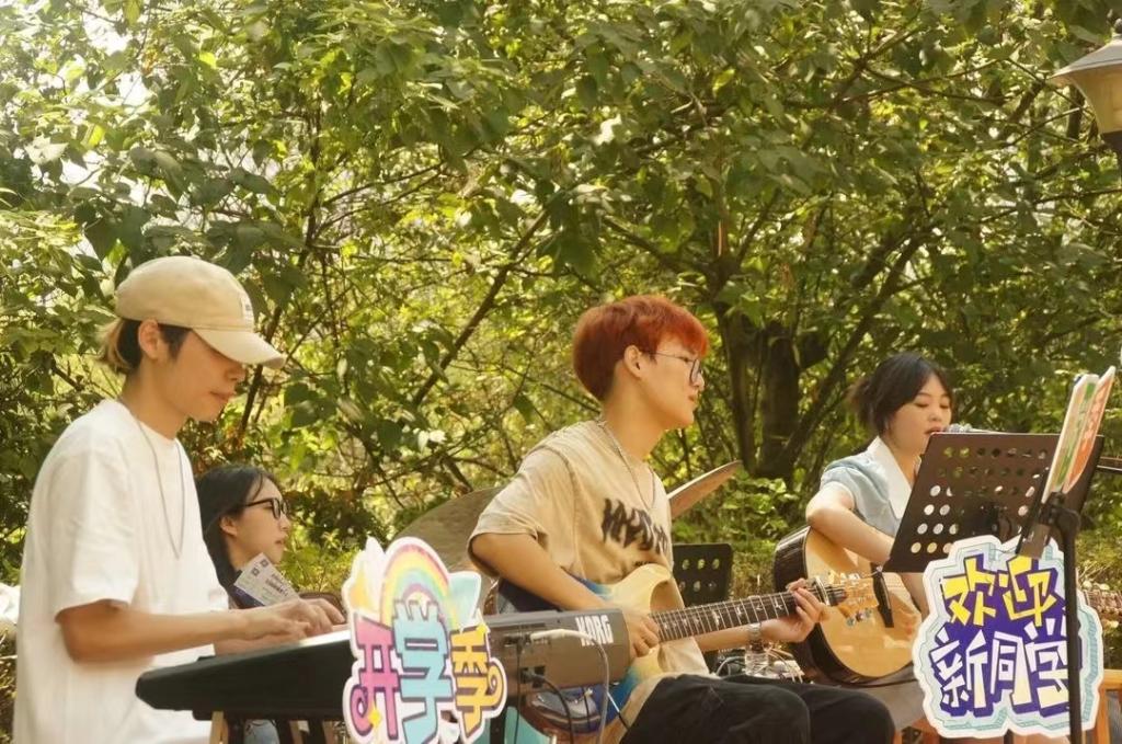 ky官方网站音乐学院“弃庚乐队”在迎新点全天演奏欢迎新生