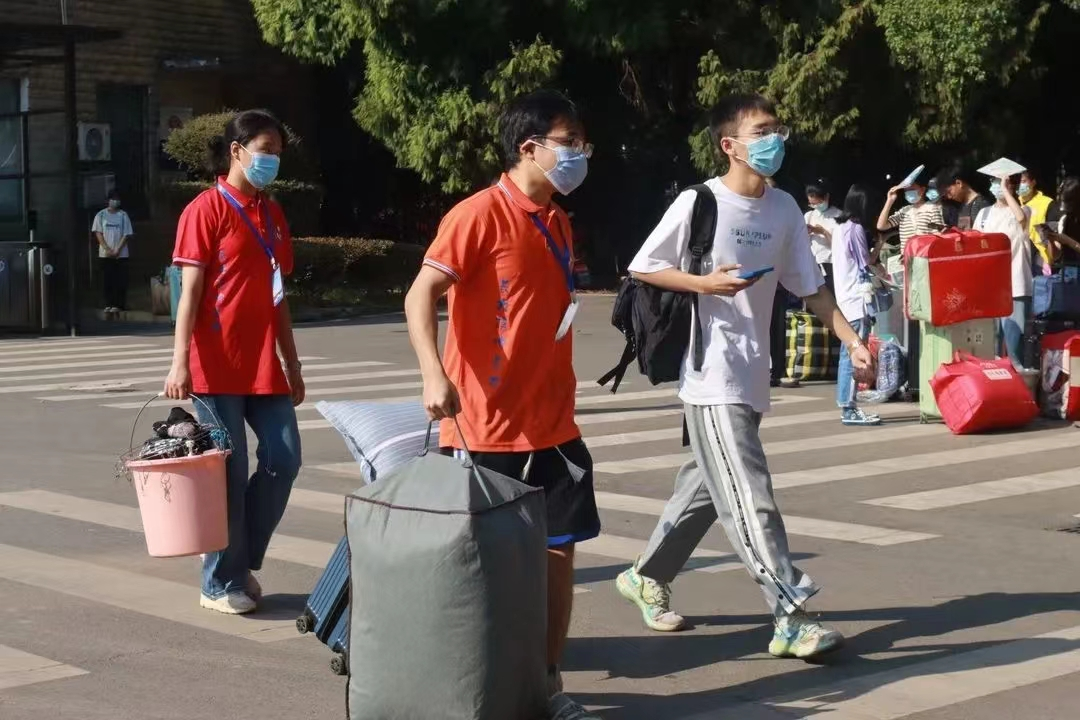 在疫情防控常态化环境下,为了最大限度保障师生的健康安全,学校调整了迎新方案,严控制入校人数,培养新生自理能力,原则上家长不入校,校内的所有报到手续由新生自主完成,学校安排充足志愿者提供“一对一”的贴心服务,让家长放心。学校在各校门与园区设置了接送点,由专车接送新生们前往各自寝室;校园内多处设有迎新点,为新生们提供引导服务;后勤处加班加点,在新生到来前完成学校多处翻新、维护工作。