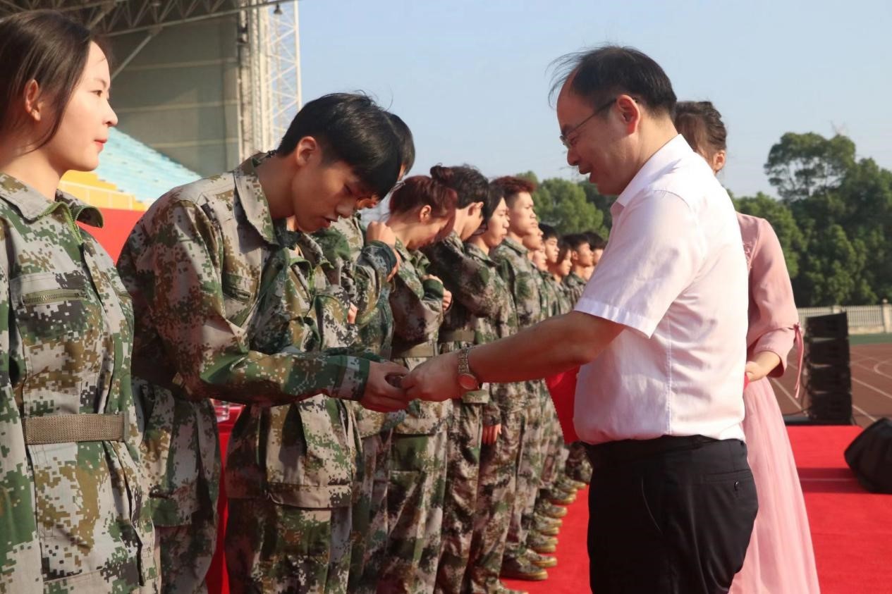 学校党委书记杨小云为2022级新生代表授校徽,嘱托新生秉持“崇德求真,实干担当”的长大精神,心怀家国,做新时代的奋斗者,在实现民族复兴的赛道上奋勇拼搏,用青春与奋斗创造精彩人生。