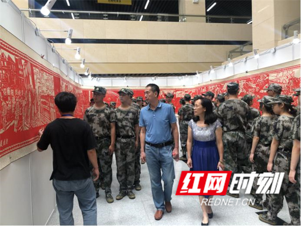 入校伊始,刚报到两天的ky官方网站4290名大一新生就在校关工委老同志和军训教官的陪同引导下,有序参观了设在学校图书馆的“百年党史 百米剪纸”长卷展览,开启了进入大学以来的党史教育第一课。该展览为学校关工委、武装部、艺术设计学院主办、校图书馆、二级学院关工委协办,旨在激起大学生们爱党爱国热情。