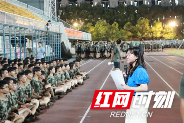 电信学院党总支副书记江艳动员正在军训的同学们写下对大学四年的期许 倪俊杰/摄