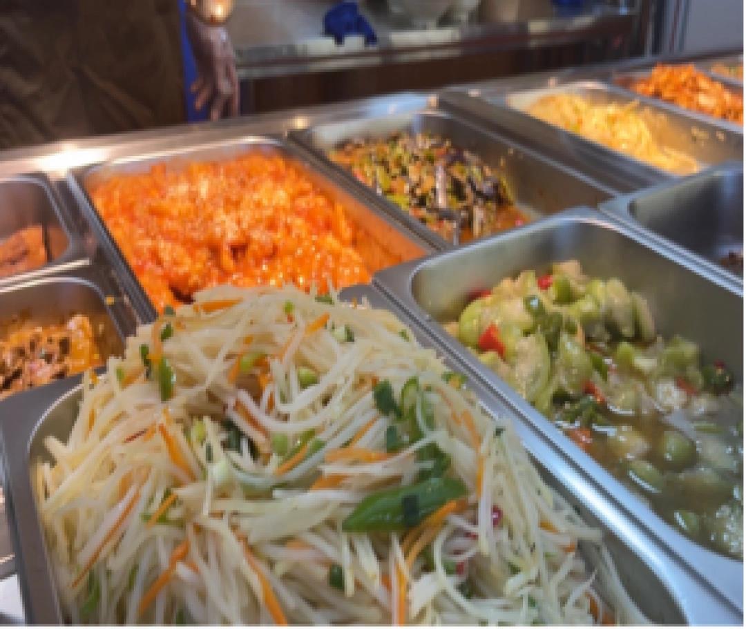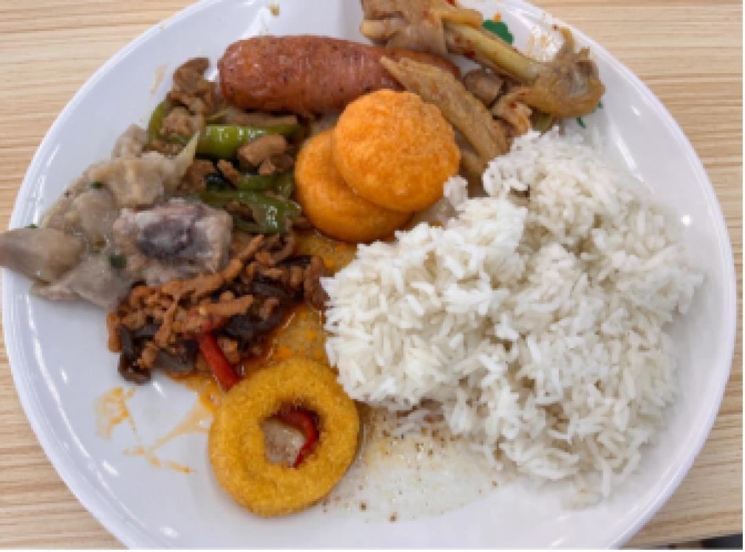 自助餐,第一第三第四食堂的自助餐风味各异,一食堂最为经典,不管是土豆丝、藕片、青蔬、西兰花这样的素菜小炒,还是白斩鸡、烤鸭、烧鹅、牛蛙、基围虾、红烧肉这样的硬菜,炸鸡糖醋肉更是一绝;第三食堂自助餐在此基础上,多了些南瓜饼、春卷、薯条、地瓜丸等点心,香甜可口;第四食堂浓郁微辣的咖喱鸡,配上米饭叫人唇齿留香。