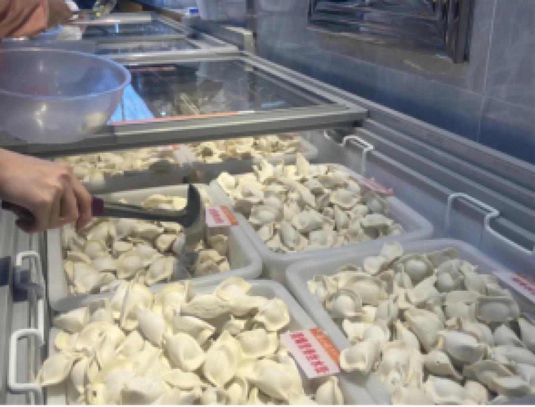 对饺子的喜爱,大概是不分南北的。三个食堂都有的自助水饺,各种馅料都有,蒸、煮凭个人喜好选择。饺子皮薄、透亮,似乎可以看到里面若隐若现的饺子馅,蘸上咸香、酸爽的酱汁,轻轻地咬上一口,皮一点便破,里面的馅料,爽口清润。