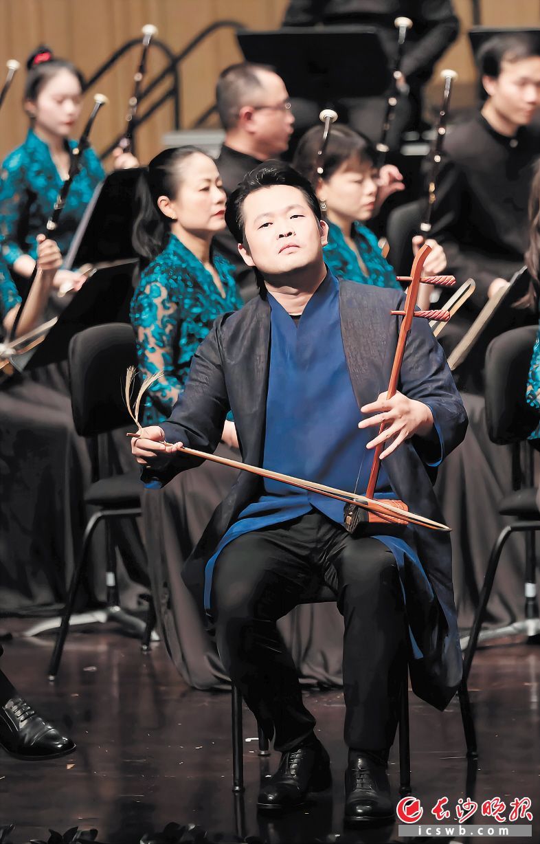 长沙首届国乐艺术节开幕式上,熊琦现场演奏乐曲 《夜深沉》。 受访者供图