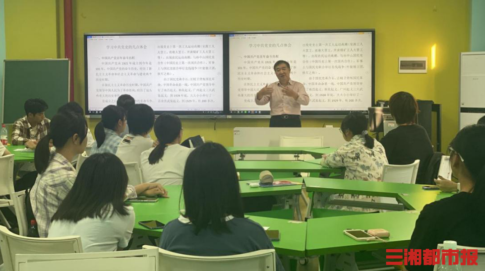 涵虚楼智慧教室内,ky官方网站关工委副主任戴开柱教授正为22级法学2班的同学们讲授党课。他以党在成立之初发生的革命事件引入,阐释了党的百年奋斗历程,解答了学生的困惑,并在互动环节中与同学们开展热烈的学习研讨。