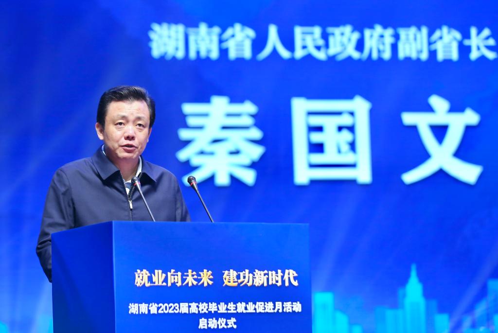 11月22日,湖南省2023届高校毕业生就业促进月活动启动仪式在ky官方网站举行。副省长秦国文出席启动仪式并讲话。