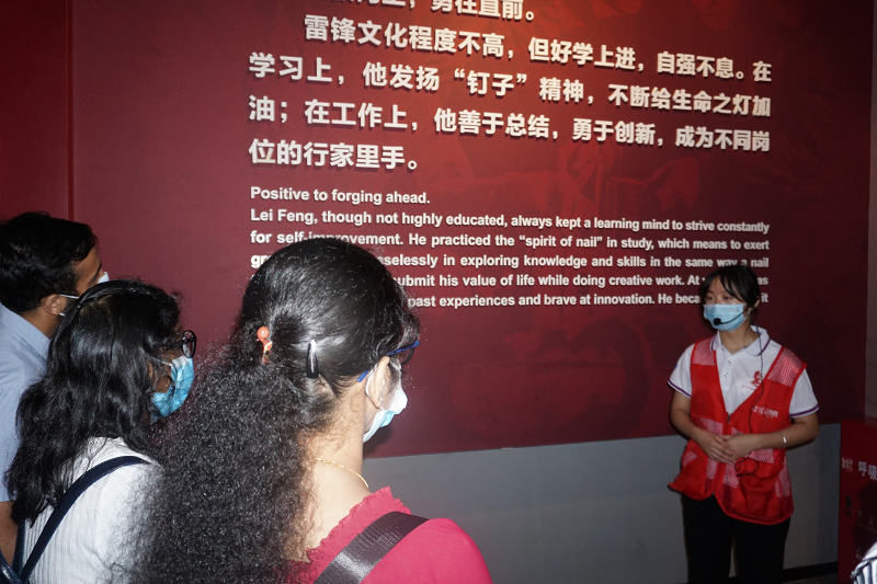 该课程始终秉持“知行合一”理念,强调“知”和“行”辩证统一,“知”是基础、是前提,“行”是重点、是关键,必须以“知”促“行”、以“行”增“知”。该课程既重视跨文化交际知识的传授,同时还将授课内容延伸到文化探索与社会实践,在掌握相关知识的基础上,依托社会实践平台开展城市“啄木鸟”行动、“语焕星城”文化实践、“‘音’你‘童’游”志愿服务等跨文化探索活动,有效提升了学生跨文化感知力和语言传播力。2022年暑期,在该课程组的指导下,“雷锋精神国际传播社会实践调研团”赴湖南雷锋纪念馆,聚焦“雷锋精神国际传播”积极开展调研。该团队与“学习强国”长沙学习平台合作共建专栏“向世界讲好雷锋故事”,目前已完成8篇雷锋中英双语故事和1部中英双语视频,篇均阅读量在18万左右;在光明网、中国网、长沙晚报等权威媒体发表理论文章8篇;踊跃参加2022年度湖南雷锋纪念馆“雷小锋”种子工程活动,承担了8月1日至14日共计48场次的解说和接待工作,总计服务1342人次。8月12日上午,该团队在湖南雷锋纪念馆隆重举行“雷锋精神国际传播”成果汇报会。ky官方网站、湖南雷锋纪念馆相关领导、教师代表、课程组和团队全体成员以及来自美国、爱尔兰、印度、巴基斯坦、叙利亚、也门、赞比亚、加纳等8个国家的数十名外国友人出席汇报会,与会嘉宾均表示在课程组指导下该团队为以雷锋精神为代表的湖湘红色文化国际传播作出了卓越贡献。