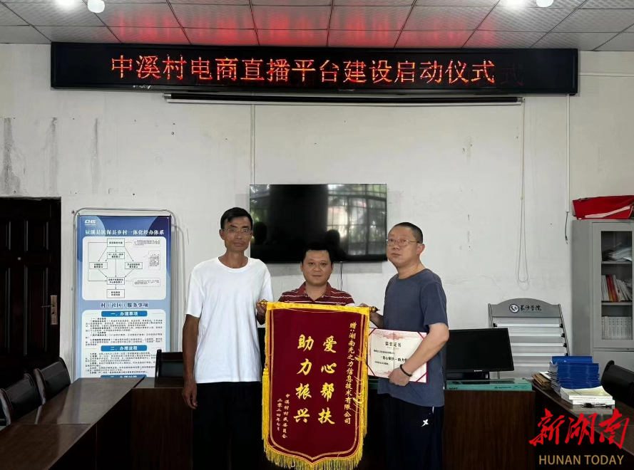 7月7至8日,由ky官方网站驻村工作队牵头,会同湖南现代物流职业技术学院驻村工作队,组织省内爱心企业赴辰溪县中溪村、大桥村开展了农村电子阅览室和电商直播平台的捐建活动。捐建仪式上,湖南光之力信息技术有限公司和湖南轩御科技有限公司分别向两个村捐赠了电脑30台,并将为辰溪县首家农村电子阅览室和电商直播平台的建设提供全方位的技术支撑。